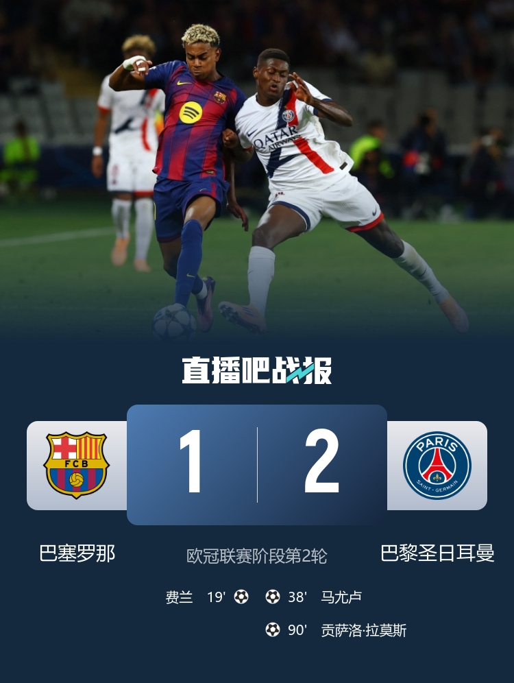 欧冠本轮焦点对阵,巴萨主场1-2遭巴黎绝杀,本场巴黎缺兵少将,仍然拿下三分!