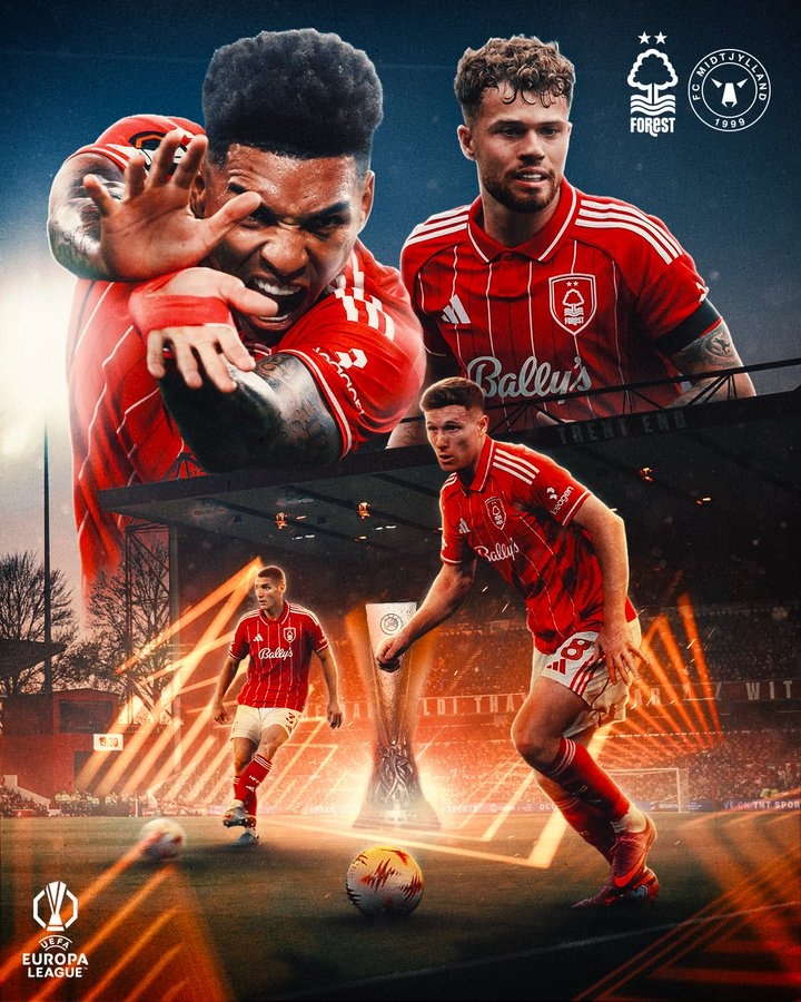 诺丁汉森林官方更新社媒动态,晒出海报和视频,预热主场对阵中日德兰的比赛。
