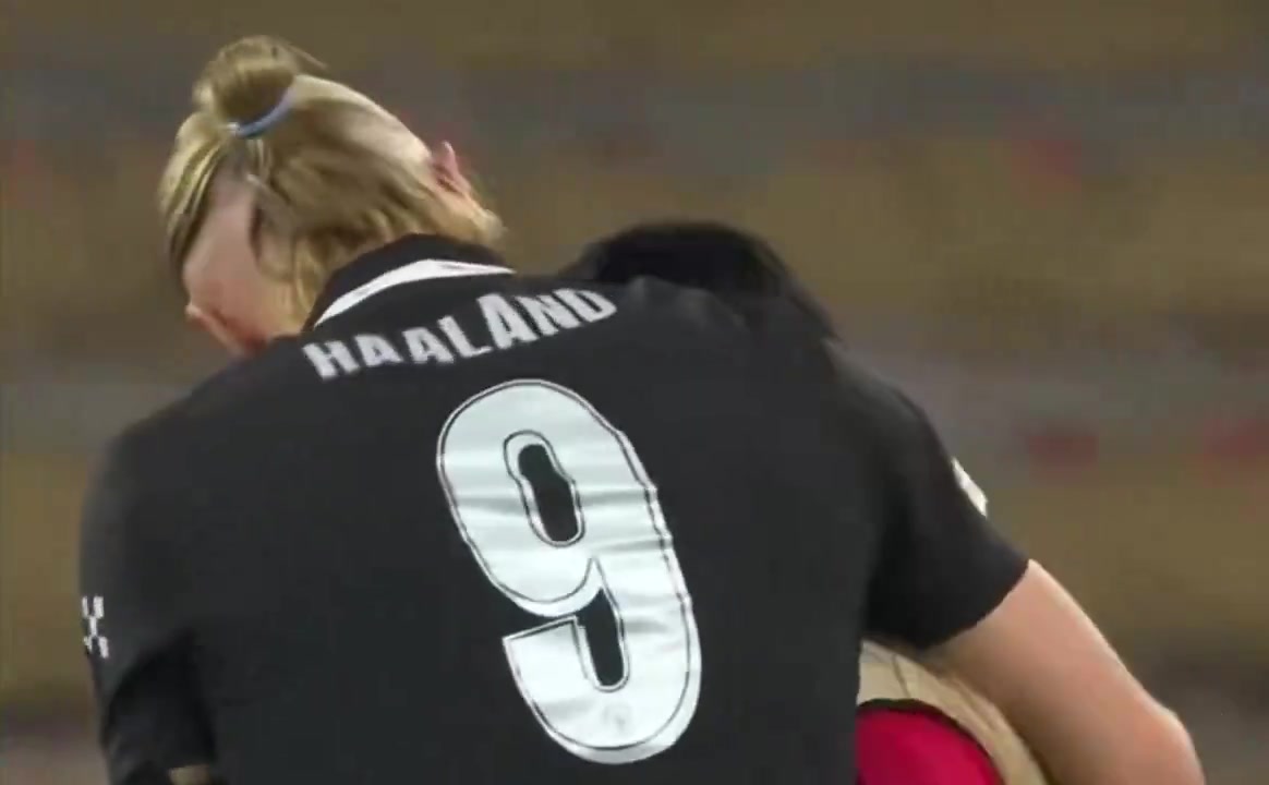 哈兰德与南野拓实拥抱寒暄,此役哈兰德为曼城打进2球,而效力于摩纳哥的南野拓实担任替补未能出场。