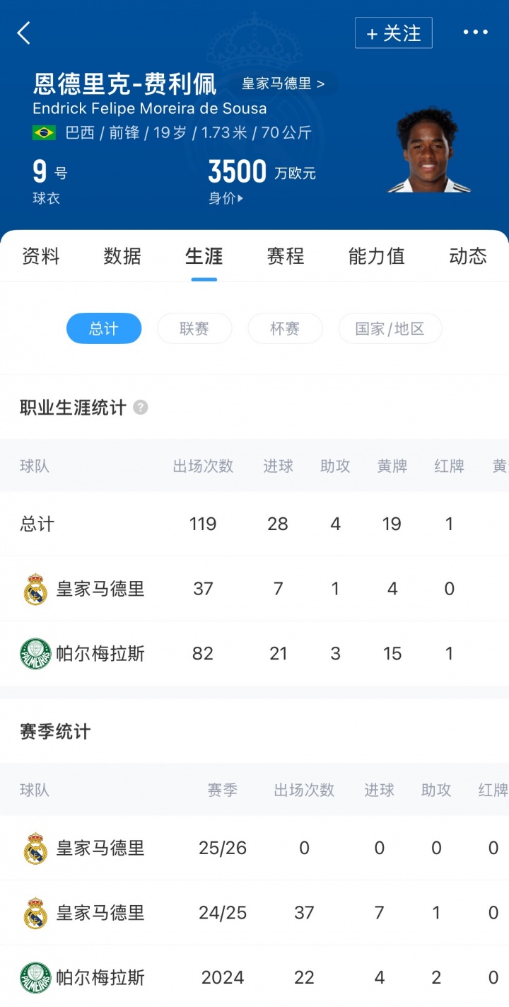 即使是对阵莱万特和凯拉特的比赛,恩德里克仍坐在替补席,即便球队有巨大领先优势,他甚至都没有获得热身机会。恩德里克梦想着跟随巴西参加2026世界杯,但缺乏出场时间可能会让他与国家队大名单渐行渐远。最近一期巴西队名单,恩德里克则再次落选。
