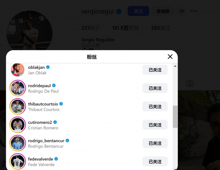 媒体注意到,迈阿密国际中场德保罗已经在社媒关注雷吉隆,这似乎从侧面证实了罗马诺的消息。